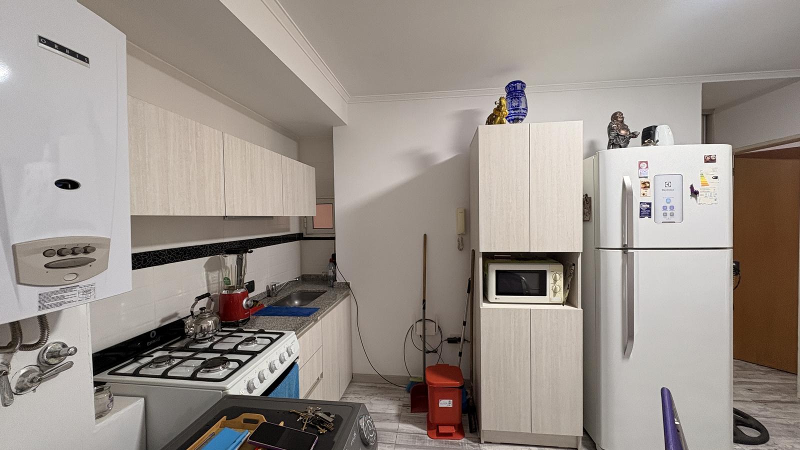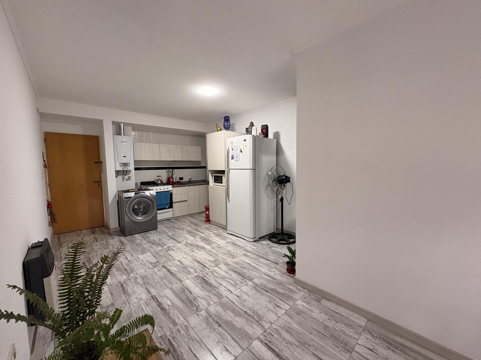 Descripción Se ingresa a un cómodo living comedor con cocina integrada y ventilación natural hacia la calle. Desde el living comedor se accede hacia la izquierda al baño completo con bañera, antebaño con placard y hacia la derecha al dormitorio. Tanto Desde el living como desde el dormitorio se puede acceder al balcón corrido a través de ventanales de aluminio blanco, el mismo está cerrado con rejas en su totalidad.Cocina con bajo mesada y alacenas de melamina 18mm simil madera, mesada de mármol gris mara, cocina de 4 hornallas con horno, calefón a gas y pisos porcelanatosAmbos ventanales cuentan con persianas plásticas.La unidad fue reciclada en su totalidad en febrero 2026
