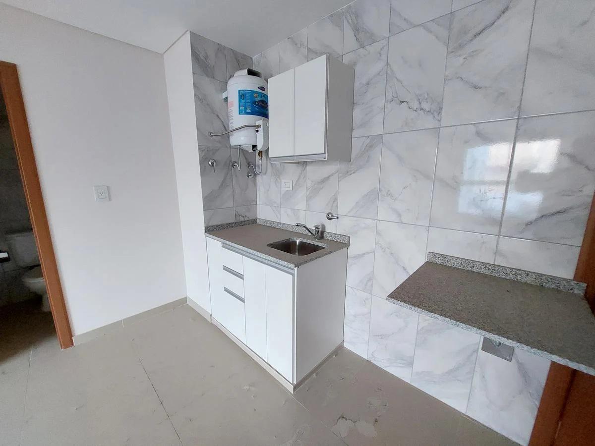 Cuenta con cocina con bacha de acero inoxidable Johnson con griferia monocomando FV, mesaada de granito gris mara, termotanque, coc alacena y bajo mesada de melamina de 18mm