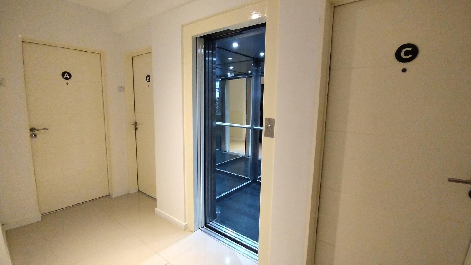 Ascensores-2 ascensores con piso de mármol y puertas de acero inoxidable, revestimiento interior de espejos y acero inoxidable. –