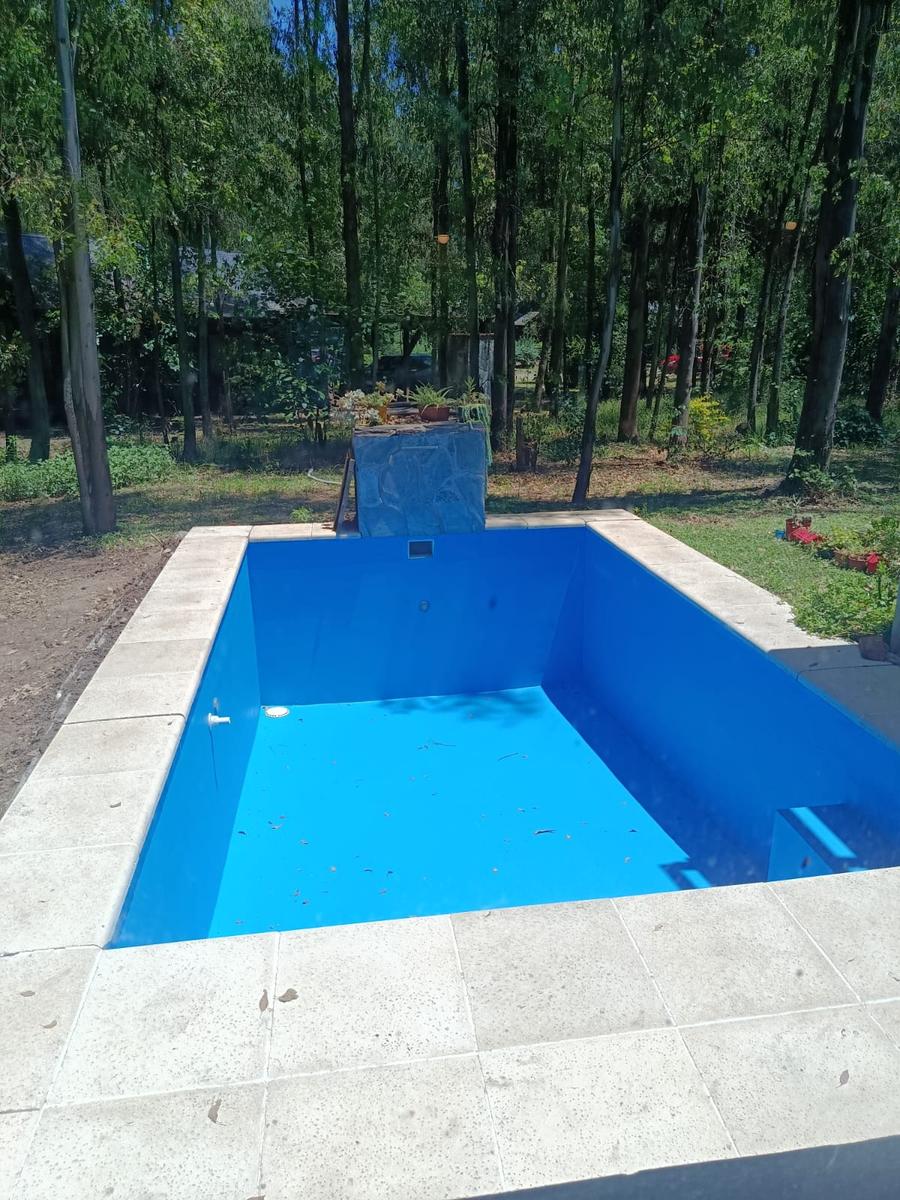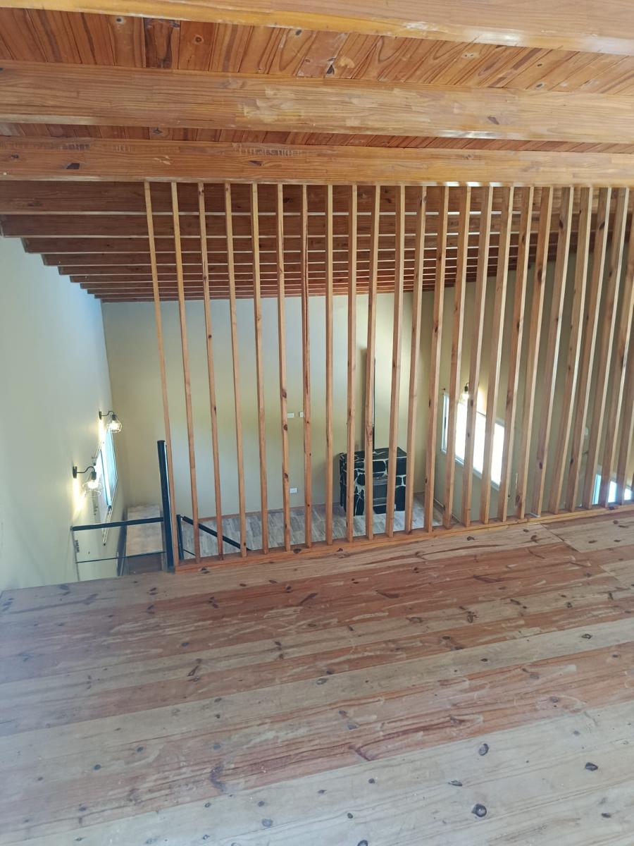 El living comedor cuenta con una chimenea a leña, mientras que la cocina dispone de una práctica mesada rústica de madera barnizada. Además, la propiedad ofrece una amplia galería y parrilla, así como aberturas con mosquiteros para mayor confort.