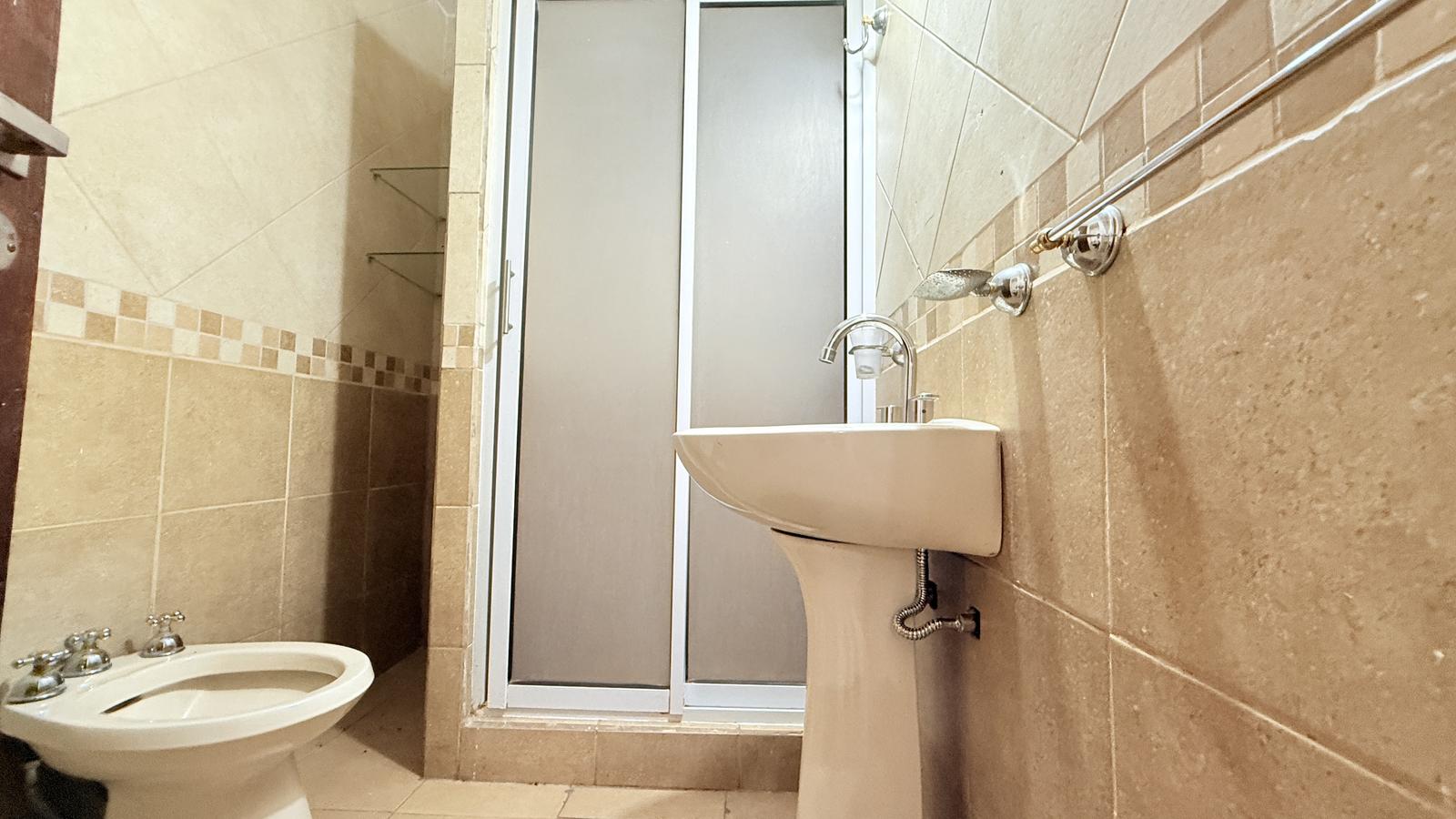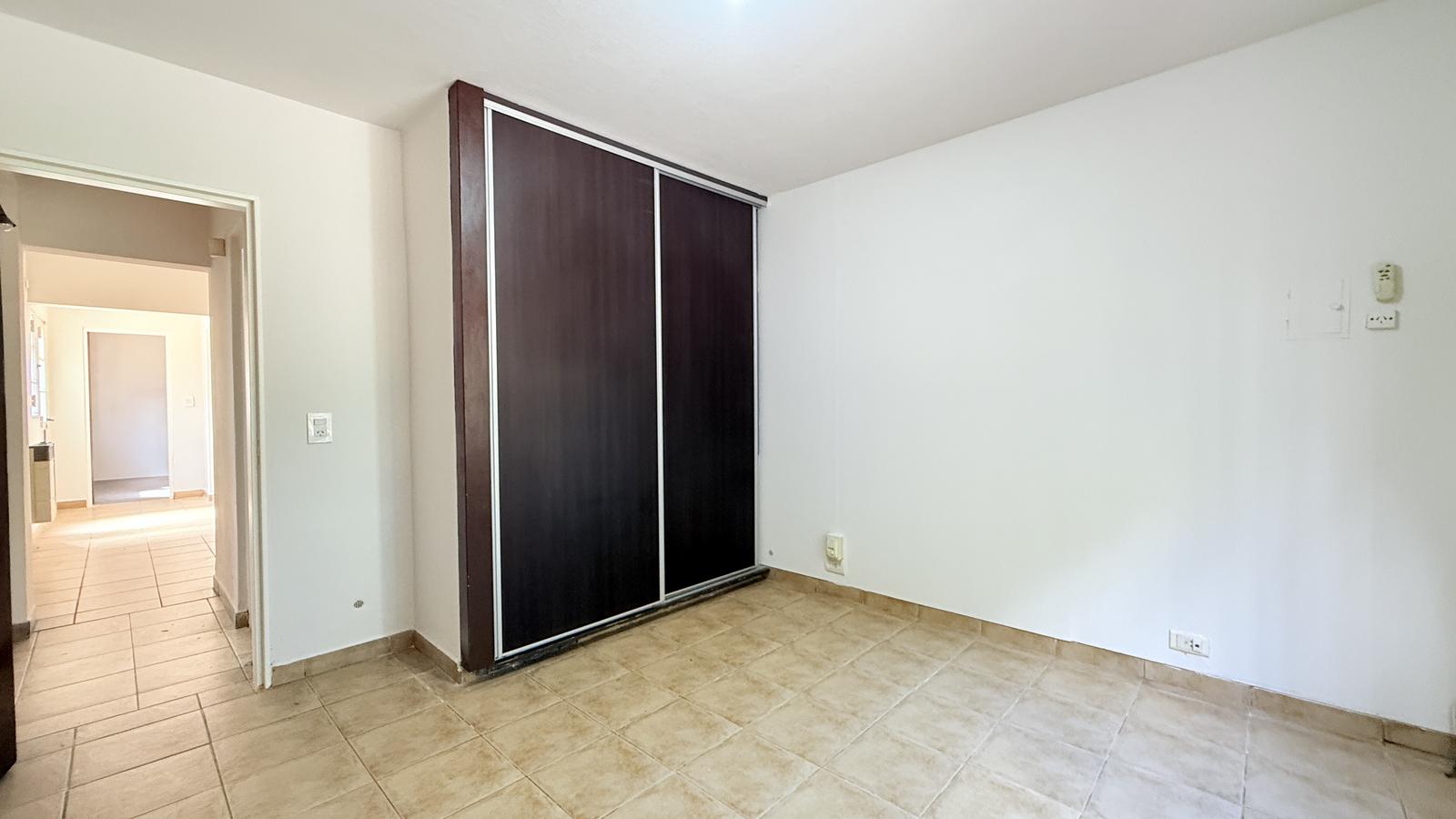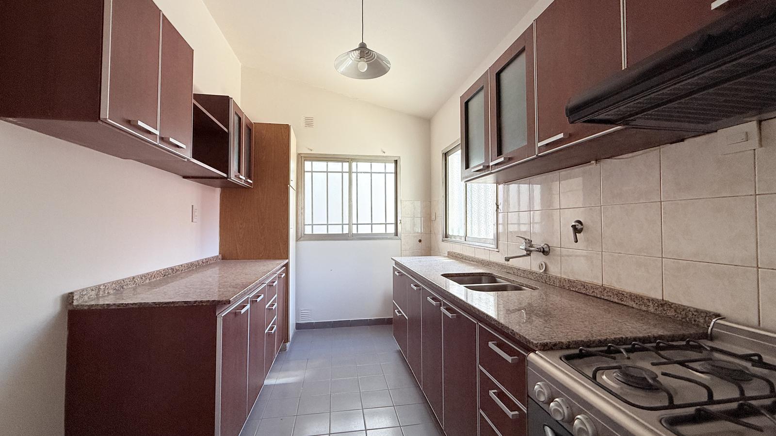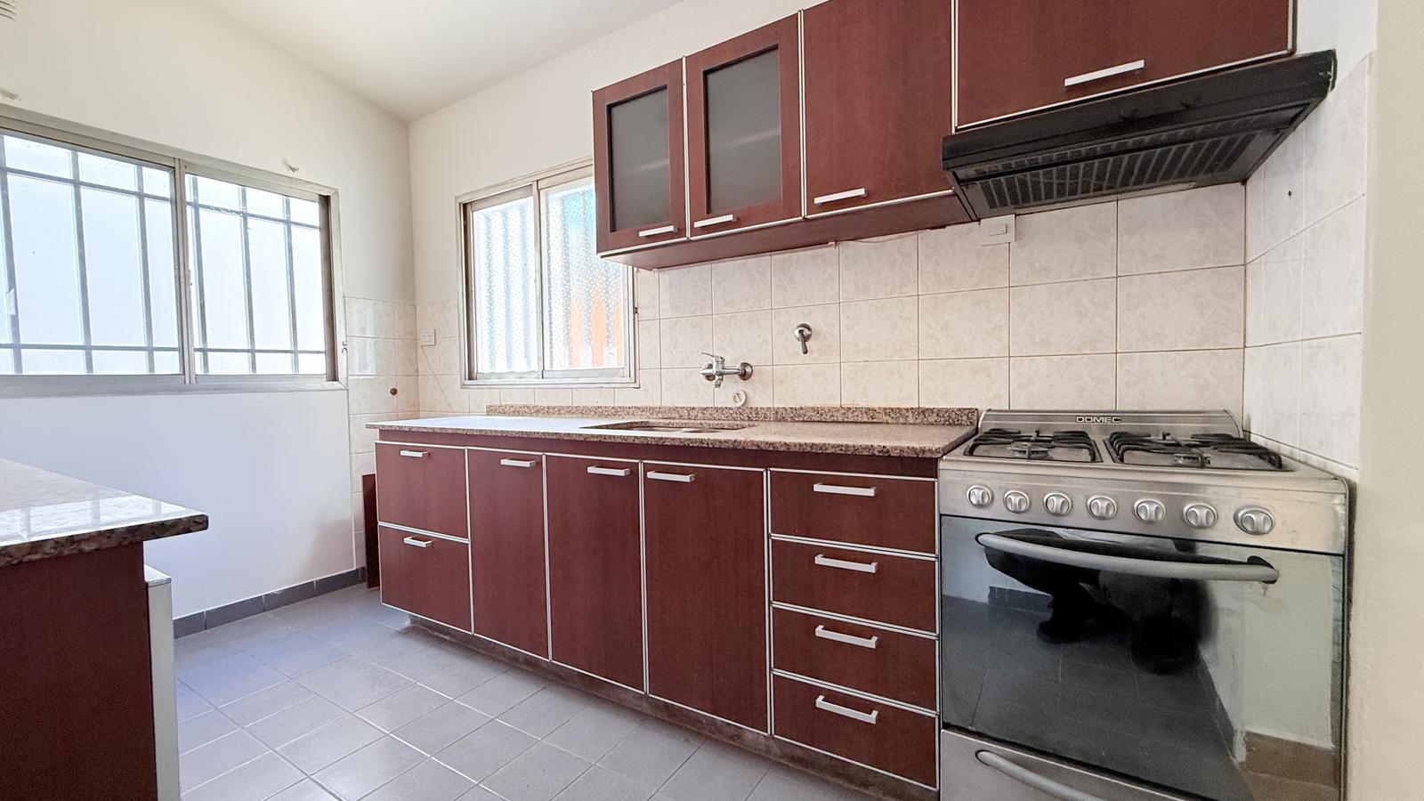 Al ingresar por el acceso principal, se encuentra un acogedor living que conectan con el resto de los espacios. El primer dormitorio cuenta con un placard empotrado y aire acondicionado, con ventilación natural al frente, adyacente a un baño completo. El comedor, espacioso y luminoso, da paso a una cocina independiente bien equipada con abundante espacio de almacenamiento.