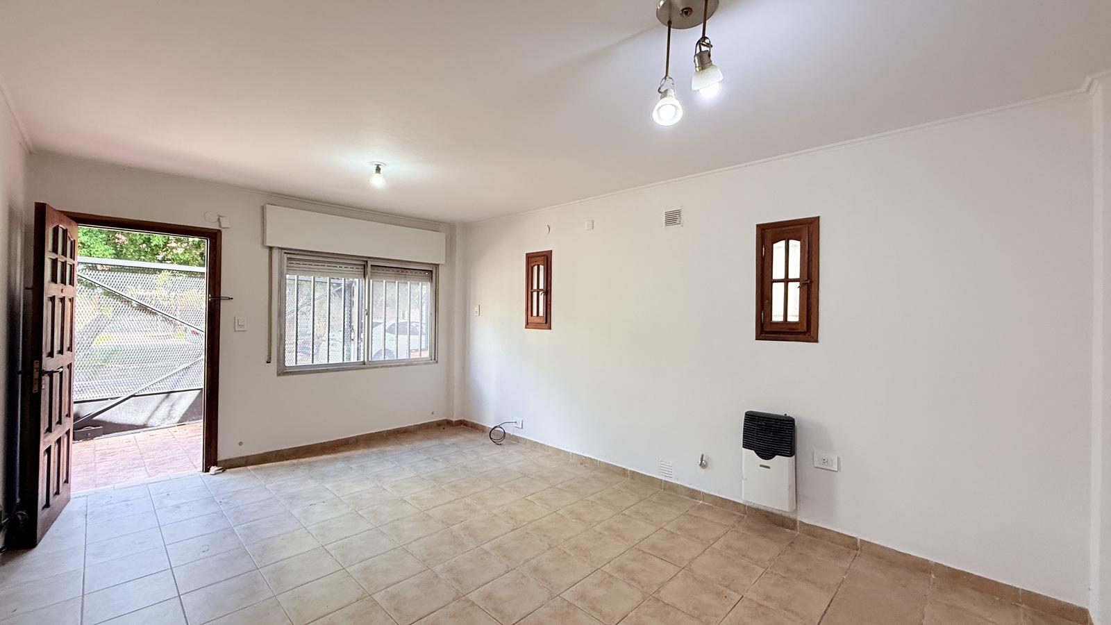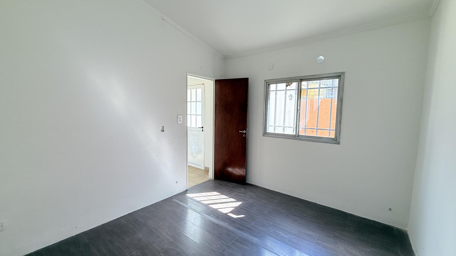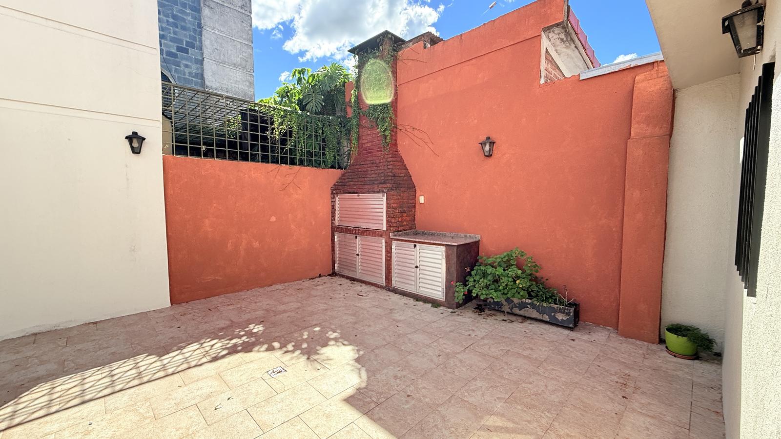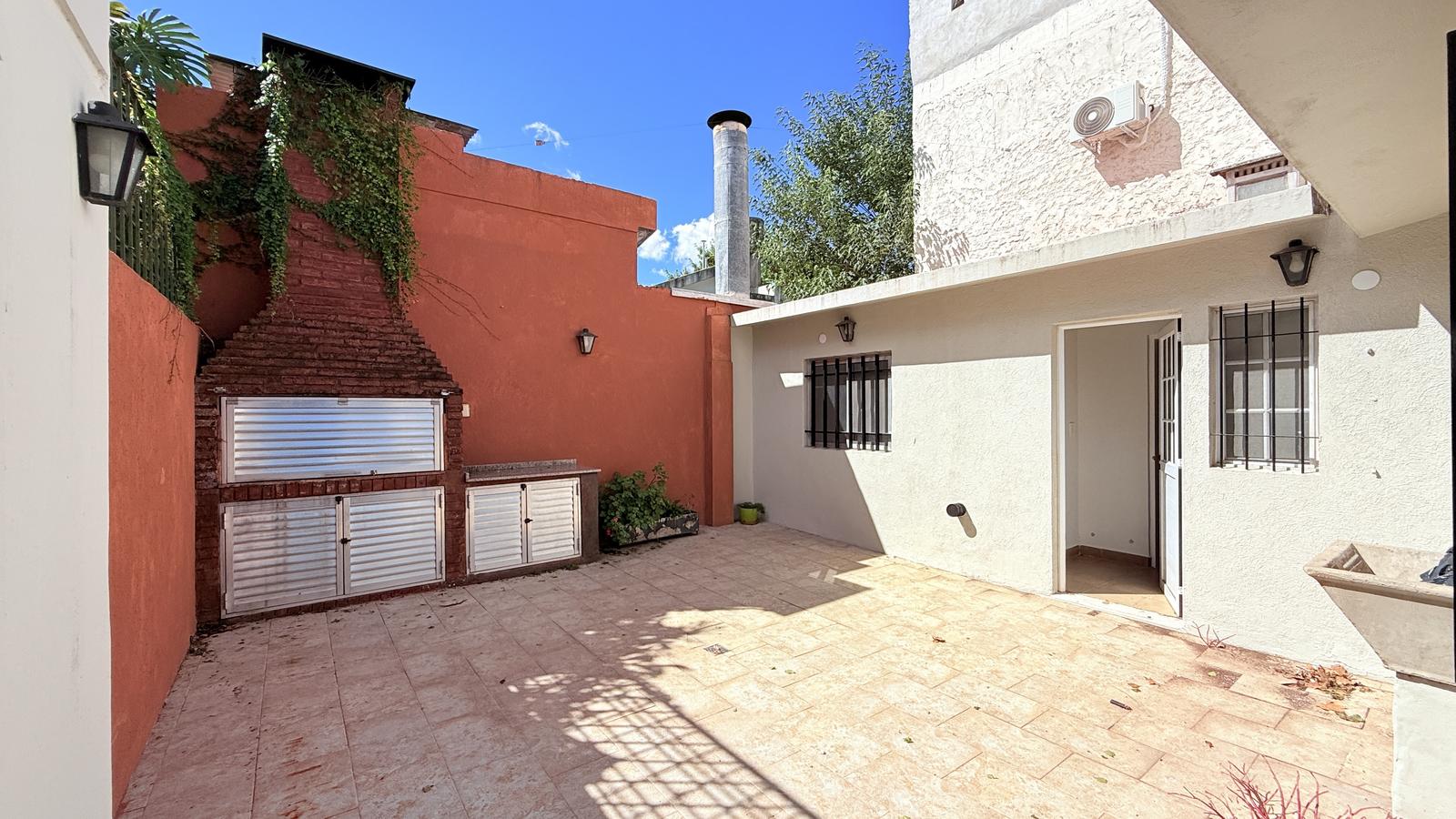 El segundo baño, también completo, ofrece un vanitory flotante y ducha cerrada. Al final de la casa, el segundo dormitorio tiene salida directa al patio seco, equipado con parrillero y mesada, además de un acceso secundario desde la calle.