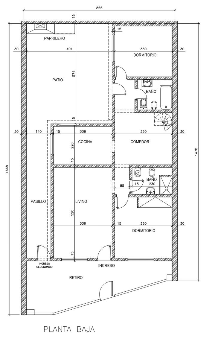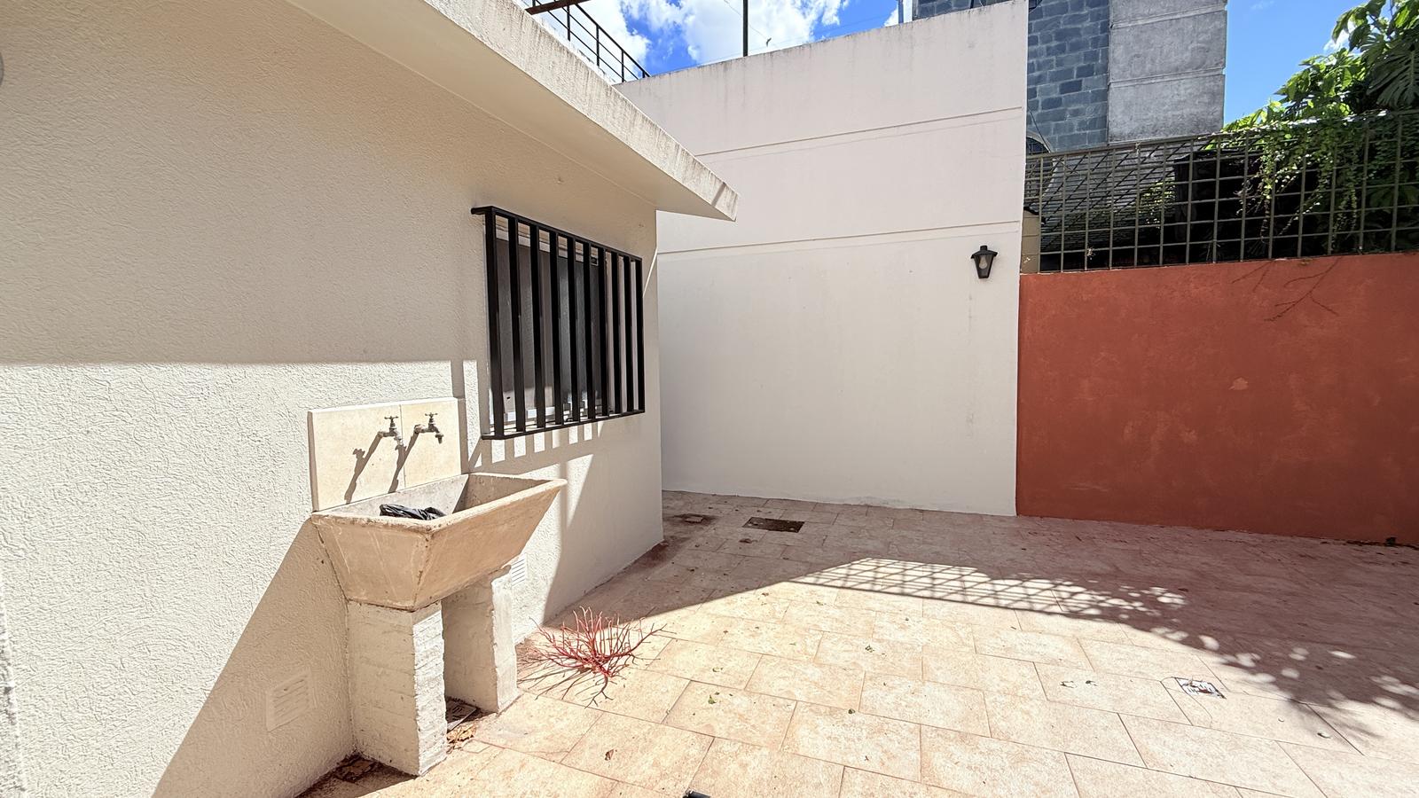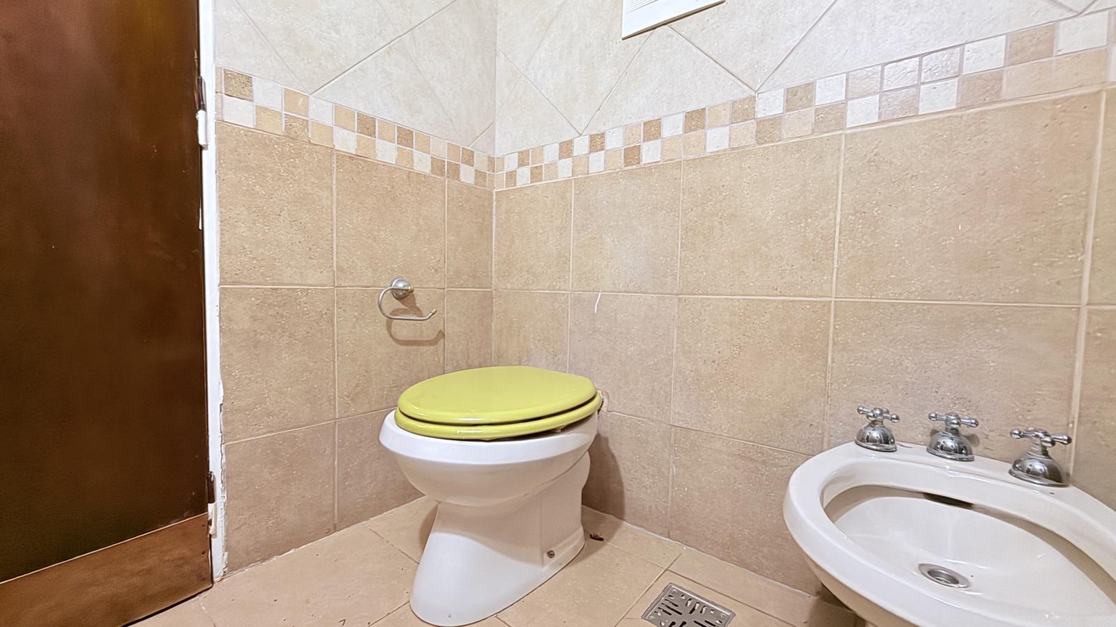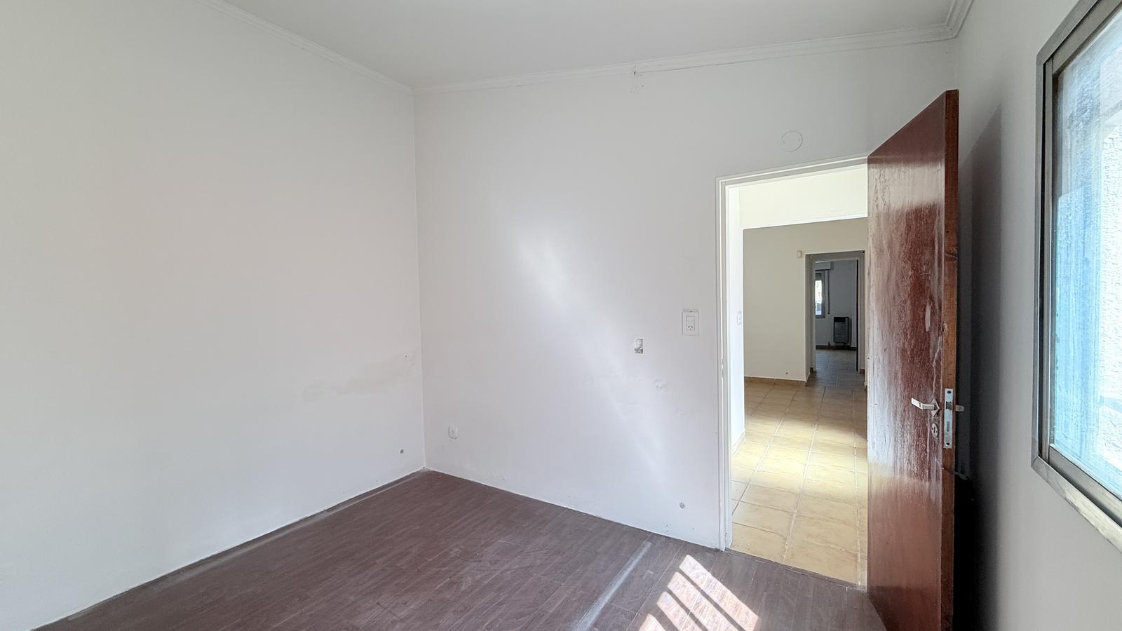 El segundo baño, también completo, ofrece un vanitory flotante y ducha cerrada. Al final de la casa, el segundo dormitorio tiene salida directa al patio seco, equipado con parrillero y mesada, además de un acceso secundario desde la calle.