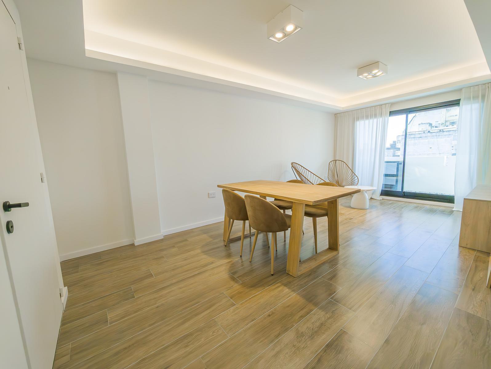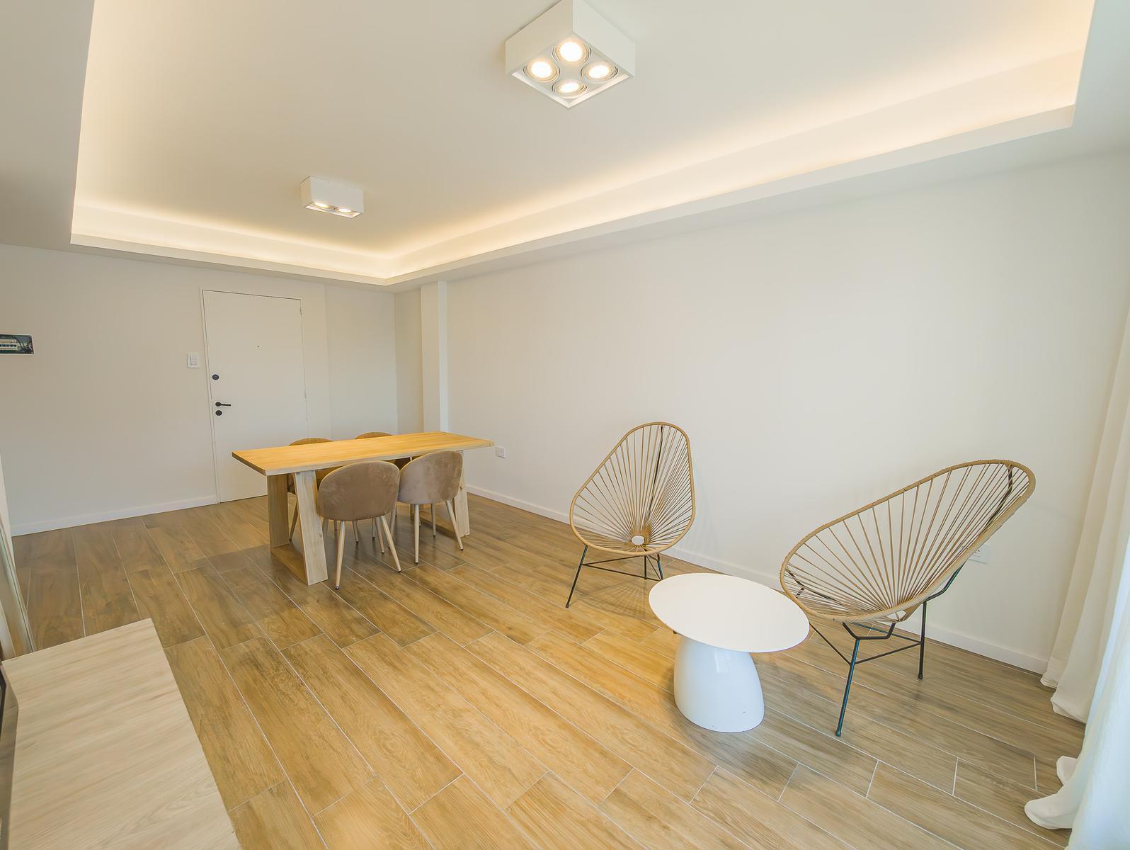 Disfrute de la ventilación cruzada y la iluminación natural gracias a los grandes ventanales y los dobles balcones, uno al frente y otro al contrafrente. El balcón posterior alberga un lavadero independiente. Los materiales de calidad, como pisos flotantes vinílicos, porcelanato en espacios húmedos y microcemento laqueado en revestimientos, aseguran durabilidad y estilo.