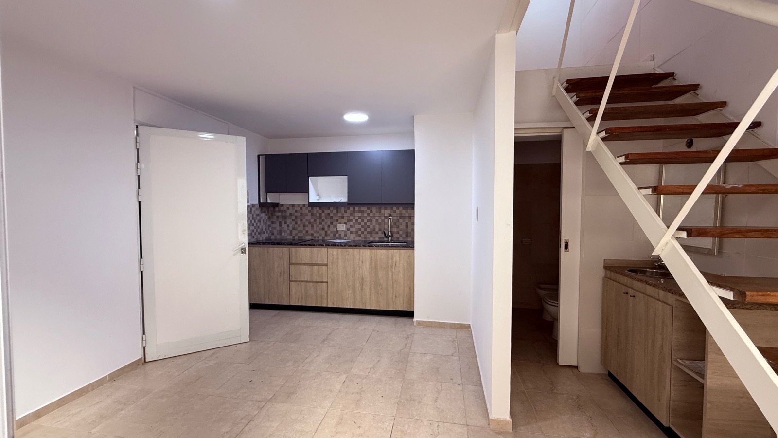 El departamento fue reciclado en su totalidad y cuenta con cocina, baño en planta baja y un patio.