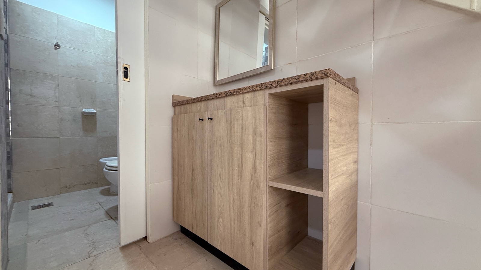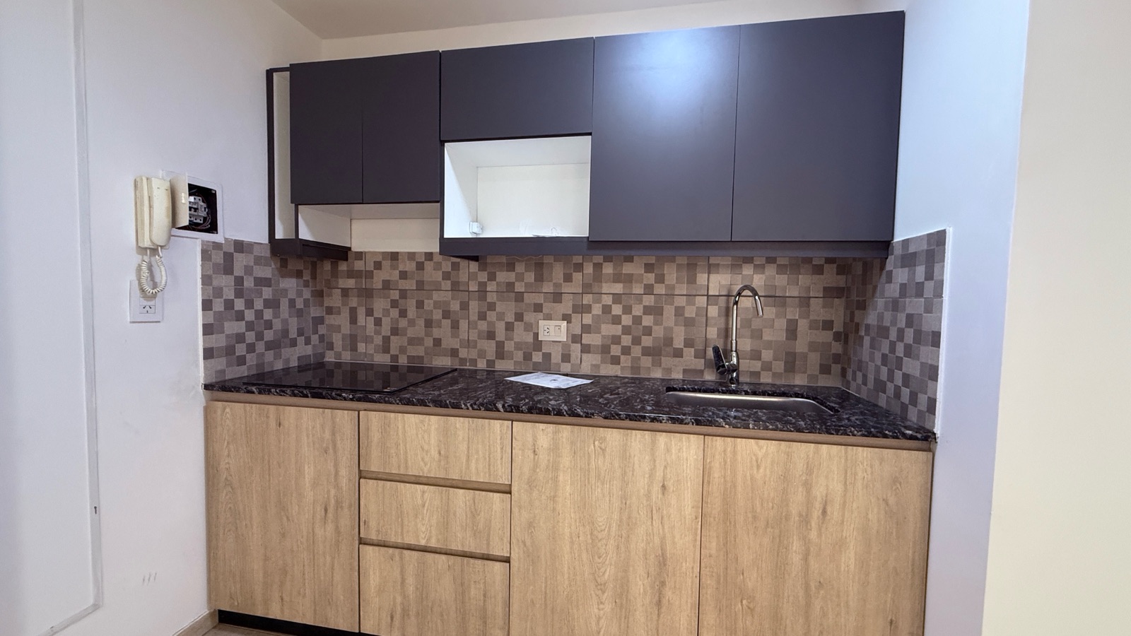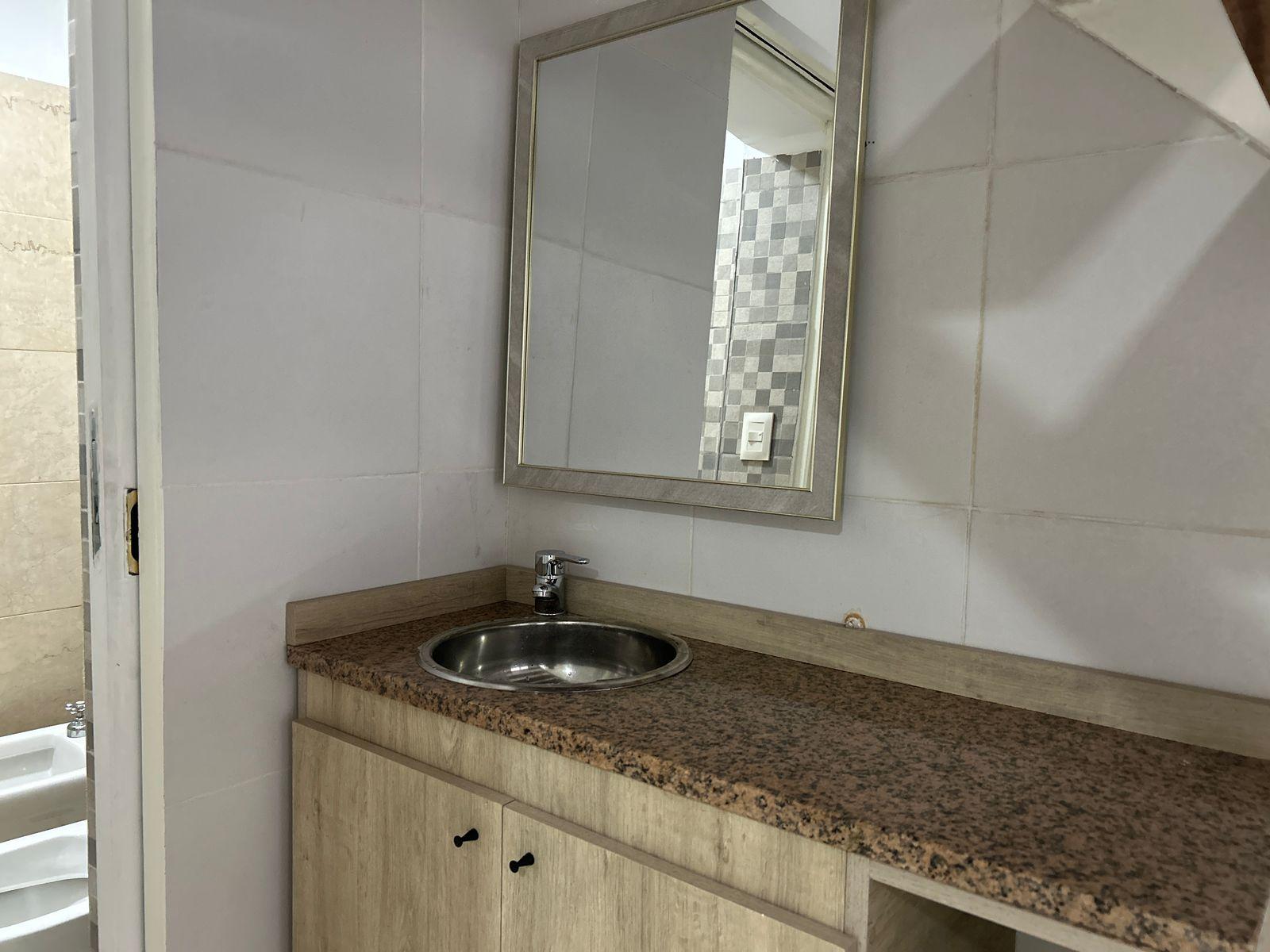 Cuenta con bajo mesada de melamina combinados, herrajes de aluminio, mesada de marmol, griferia monocamdo. Habitacion con pisos flotantes, placard empotrado y aire acondicionadoLas aberturas son linea módena blanco