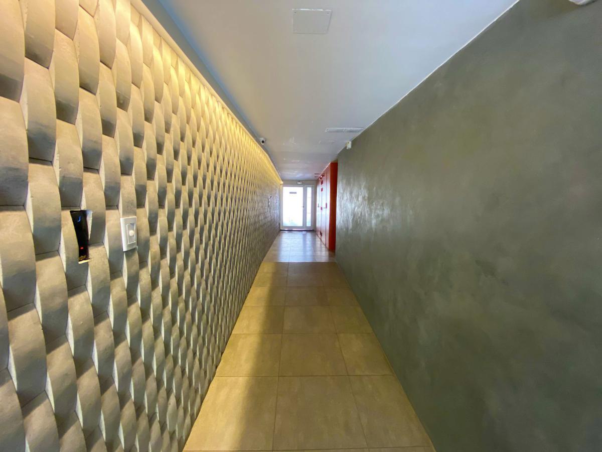 Departamentos de diseño, ventilaciones naturales y amplios ambientes con balcon. Pisos de porcelanato, aberturas de aluminio, caldera y radiadores. Lavadero, cocina grande con amueblamiento completo (alacenas y bajo mesadas) isla en granito negro.Baño con bañera, cocina, preinstalación para aire acondicionado, ventanales de aluminio de piso a techo, puerta de ingreso macisa,