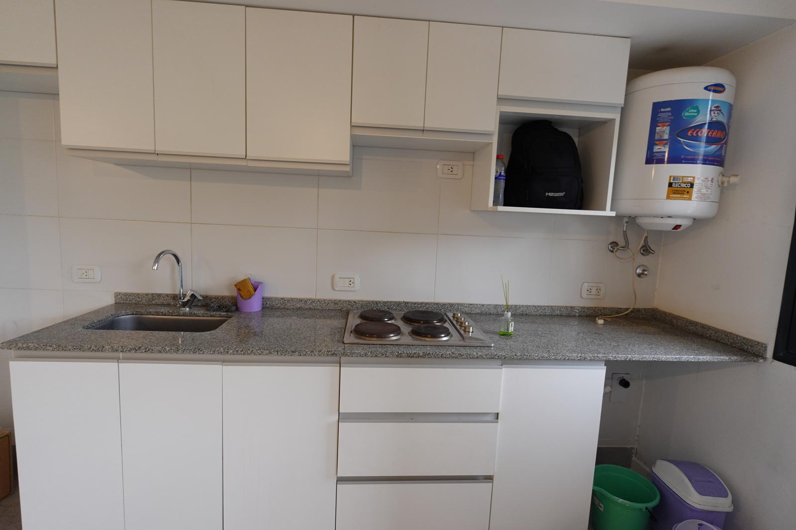 La unidad tiene 30 m² cubiertos + 2 m² de balcón (32 m² totales), un baño completo con ventilación natural y una cocina bien equipada con muebles bajo mesada y alacenas, además de espacio para lavarropas. Para mayor confort, incluye aire acondicionado.