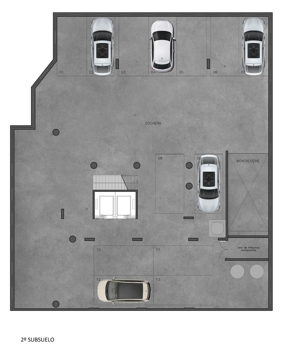 Tres niveles de cochera. Los ascensores tienen paradas en todos los niveles permitiendo la comodidad de los habitantes del edificio.