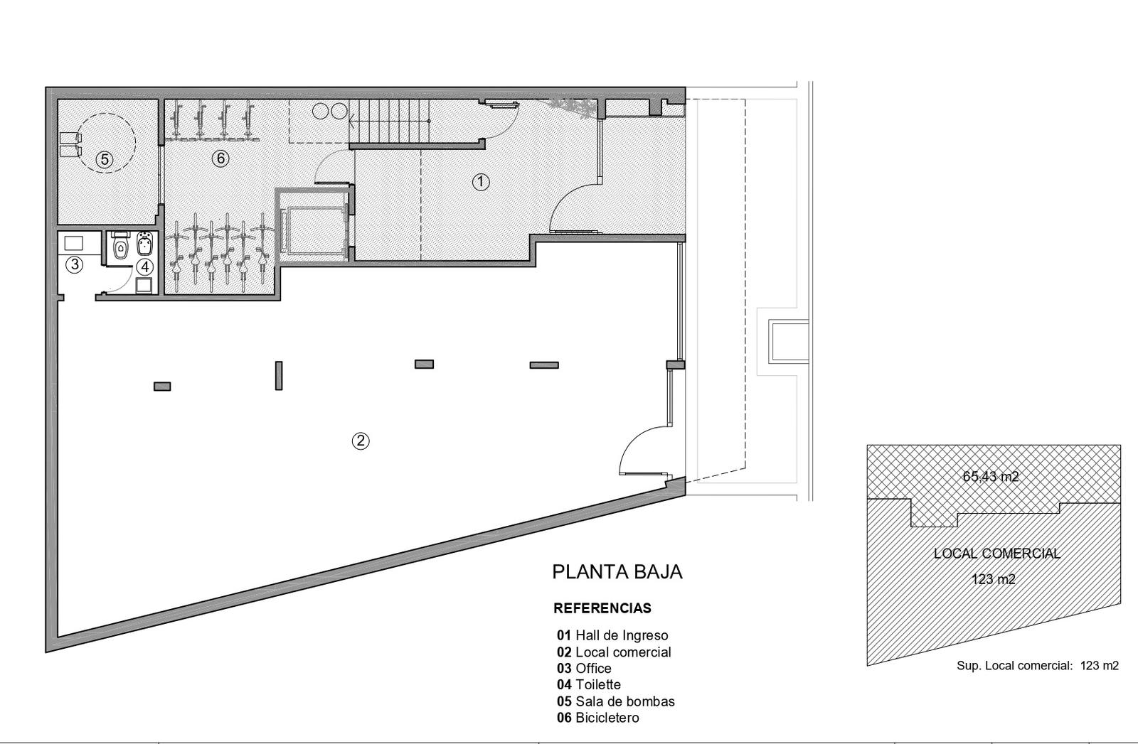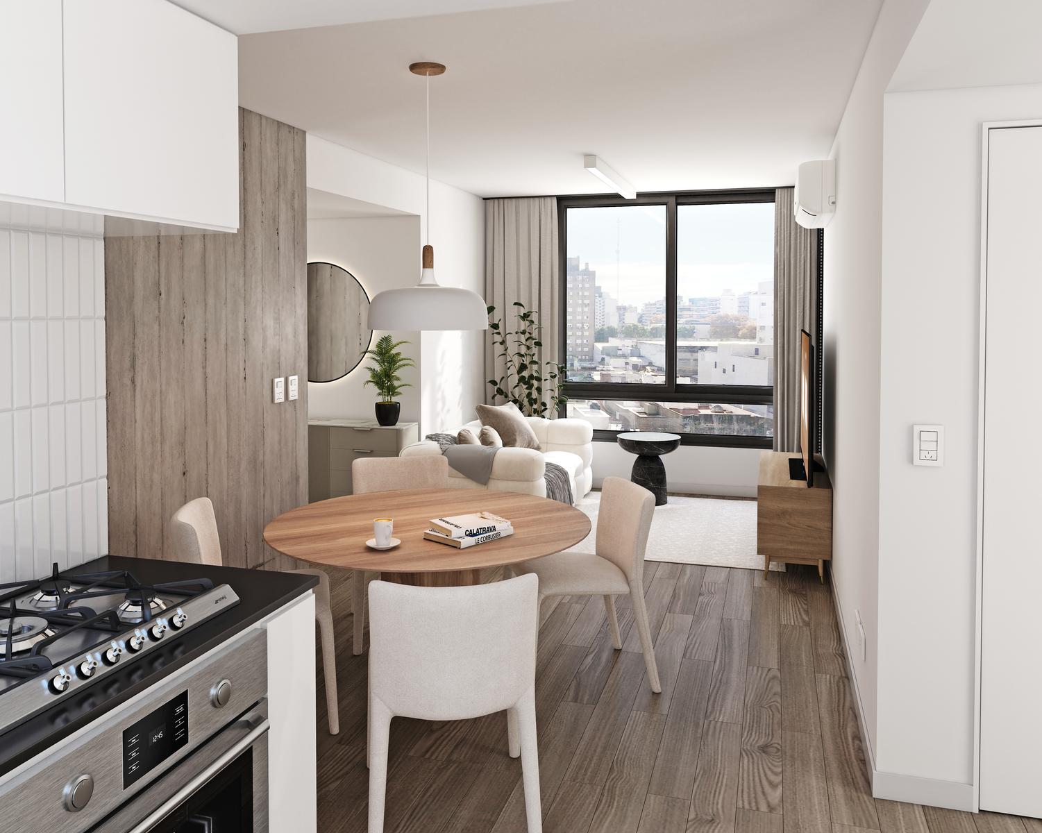 Características del Proyecto:* Edificio de Planta Baja + 6 pisos + Terraza con amenities* Local comercial en PB (único)* Unidades de 1 dormitorio desde 43 m² a 55 m² (con patios en primeros pisos o amplios balcones en pisos superiores)