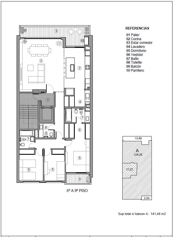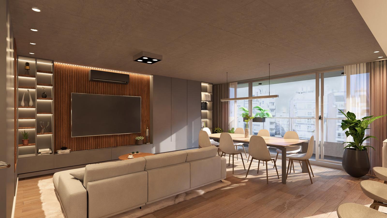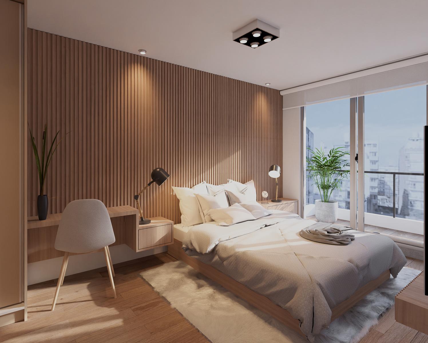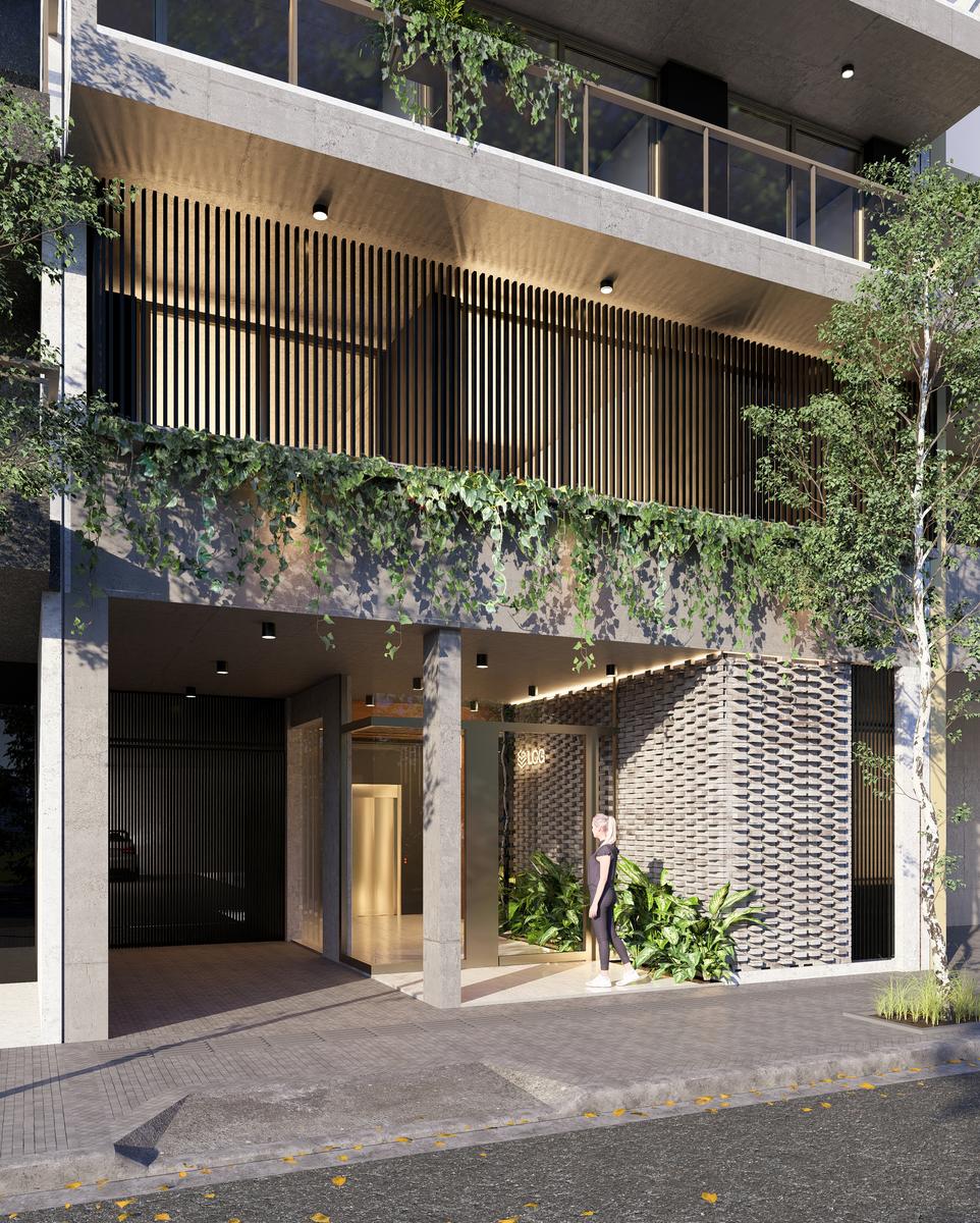 Pisos 6º, 7º y 8º – Pisos exclusivos de 3 dormitorios * Diseños tipo “casa en altura”, con gran confort y funcionalidad. * Living-comedor con salida a balcón aterrazado corrido al frente. * Cocina separada con isla/desayunador. * Lavadero independiente. * Toilette de recepción. * Dormitorio principal en suite con vestidor. * 2 dormitorios adicionales con baño completo compartido.
