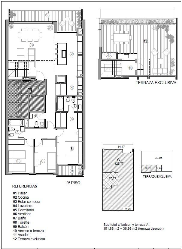 Piso 9º – Unidad Premium con Terraza Exclusiva * Misma distribución que los pisos 6º a 8º. * Terraza privada con solárium y parrillero exclusivo de la unidad. Detalles constructivos destacados * Diseño contemporáneo y funcional. * Ambientes luminosos con ventilación cruzada. * Terminaciones de calidad en baños y cocina. * Espacios pensados para el confort cotidiano.