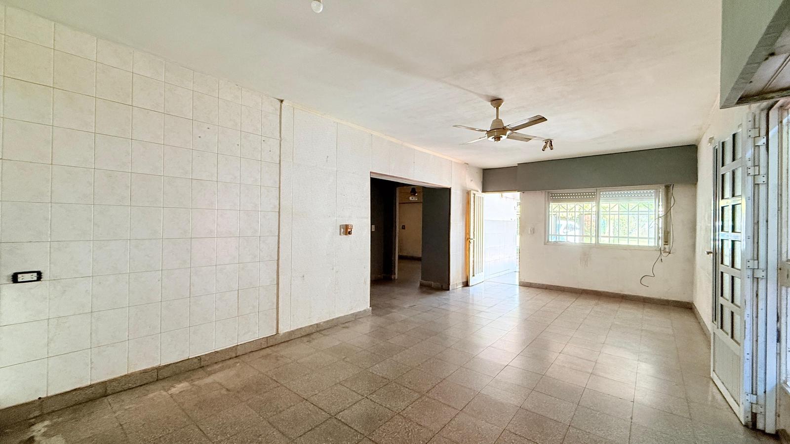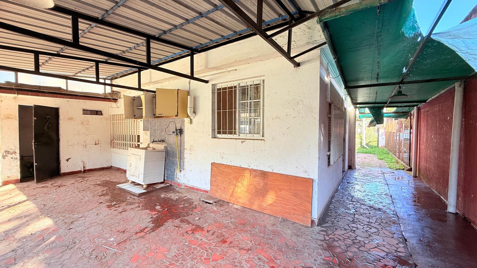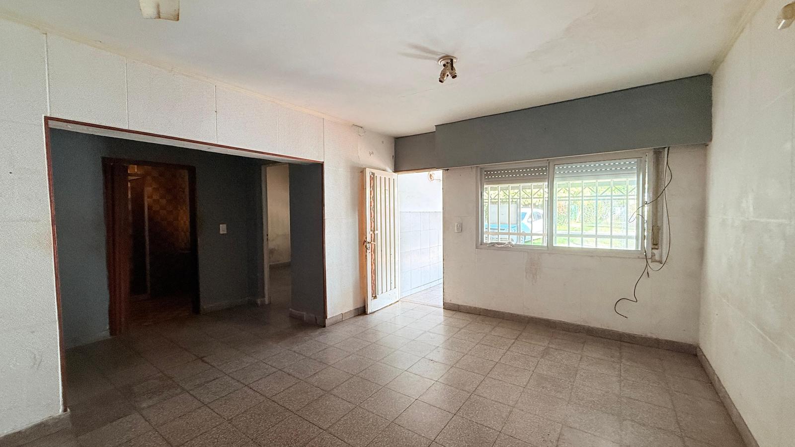 La fachada es de rejas de malla de acero de dos hojas corredizas para el ingreso de hasta 3 vehiculos en paralelo, cubierto por techo de chapaSe ingresa a un living comedor con cocina integrada y distribuidor de la casa, hacia la izquierda se accede al quincho con parrillero y jardin; y hacia la izquierda el íntimo donde se ubica un dormitorio con ventilacion al frente, un baño completo con vanitory de pie, habitaculo de duchas y sanitarios de loza, y por ultimo el segundo dormitorio con ventilacion al contrafrente