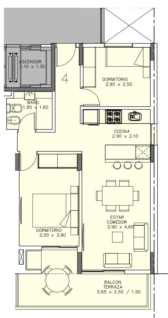 La unidad 2 se ubica en el piso 4 y cuenta con una superficie total de 87,67 m² totales, compuesta por 82,15 m² cubiertos y 5,56 m²de balconPresenta una distribución funcional con cocina integrada al living comedor, con ventilacion natural hacia el norteDos dormitorios con frente de placard, uno en suiteBalcón corrido al frente con parrillero.Cuenta con aberturas de aluminio A40 con doble vidrio hermético.