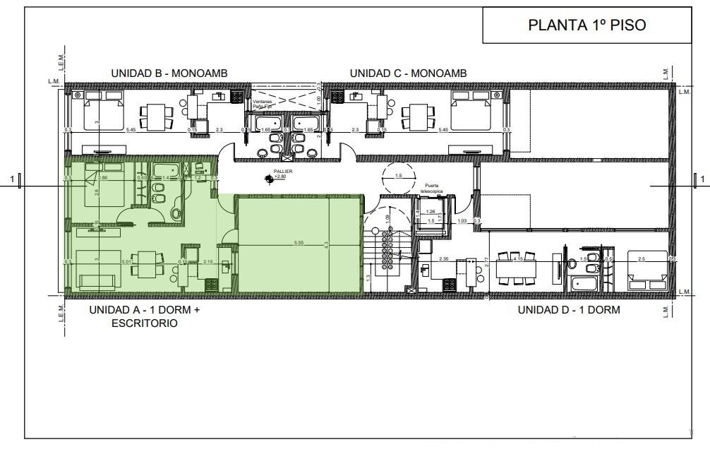 Se ingresa a un amplio y luminoso living/comedor diario, integrado a la cocina por una barra tipo americana, un espacio de oficin, un dormitorio con placard empotrado y baño completo.Cuenta con balcón aterrazado.Aberturas de doble vidrio hermético (DVH) y pre instalacion de aire acondicionado en los ambientes.